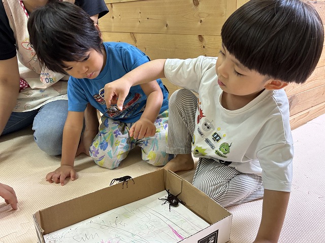 キッズベースでみんなで飼っているクワガタとカブトムシのお名前発表! みんなで色々意見を出し合って多数決をとって決定しました! 大きい順からカブトムシのオスの「かぶとん」「らん」メスの「もぐ」クワガタの「ボス」「くろちゃん」「ちゃりん」「ボスベイビー」です!...
