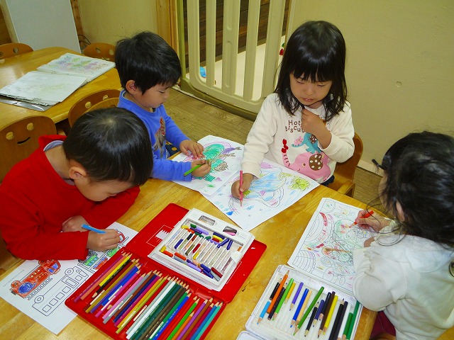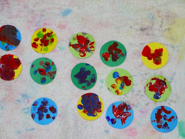 カラーペンでカキカキ 絵具でペタペタ さぁ何ができるかな❓ 今日は手洗い場が渋滞だぁーー💦